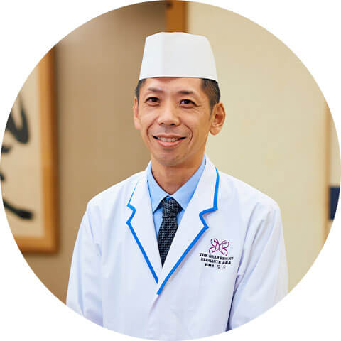 淡路島生まれ淡路島育ち。島内や大阪市内など、いくつかの現場で腕を磨いた後、2019年より同ホテルの調理場に。地元の味を知り尽くした目利きで、旬の食材をもっともおいしいカタチに仕立てる、和食ひと筋26年のベテラン料理人。